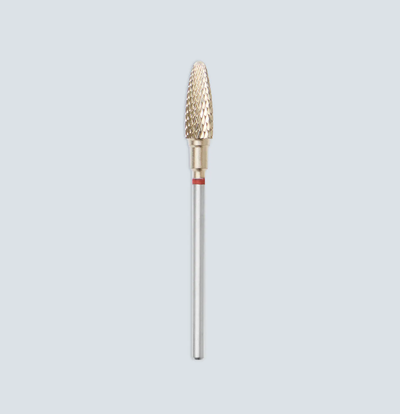 Schlitzfräser in Form eines schmalen Kegels mit abgerundetem Ende, entwickelt für das präzise Bearbeiten und Mattieren der Nagelplatte.