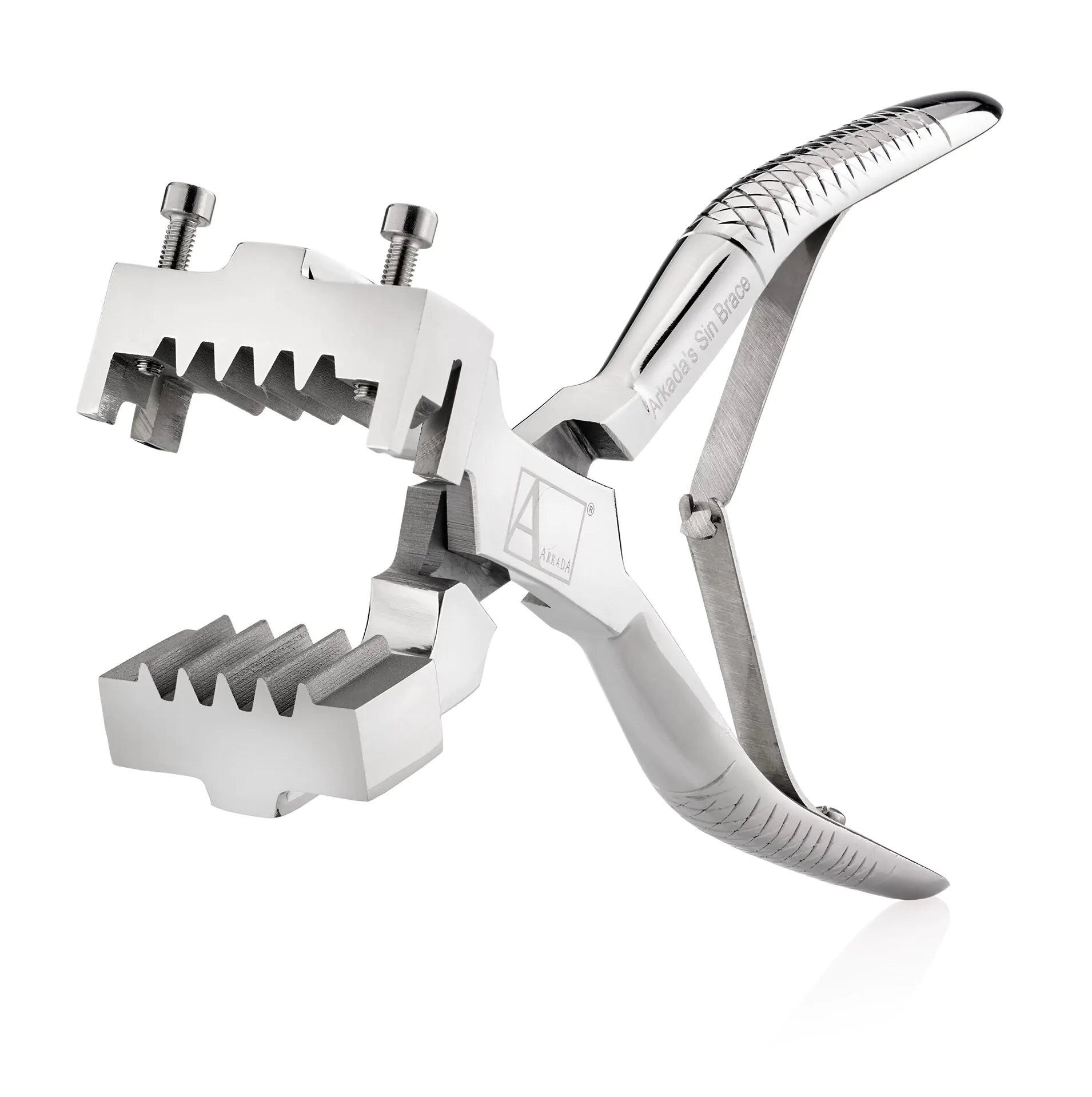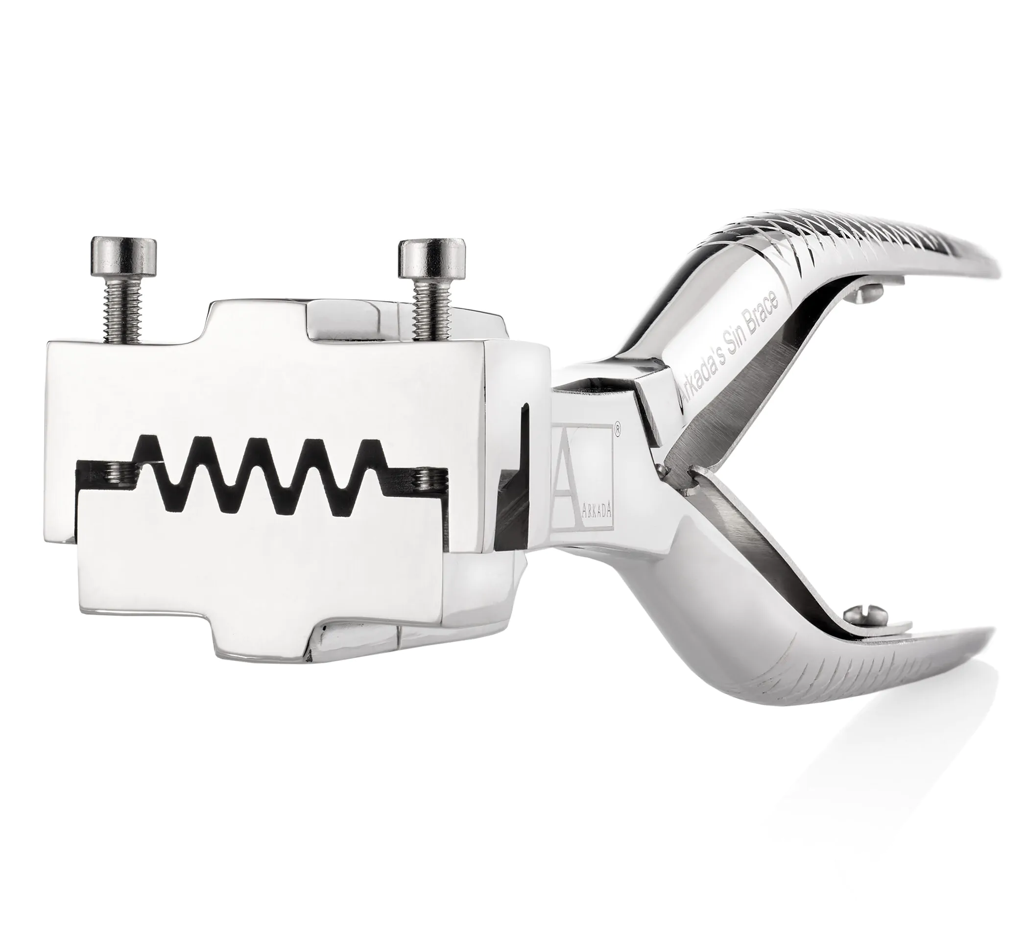 Der Arkada’s Sin Brace besteht aus einem ergonomisch geformten Handgriff und einem Spannmechanismus, mit dem sich Spangen in Sinusform biegen lassen.
